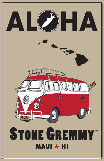 ALOHA ~ MAUI ~ HAWAI'I ~ SURF CALIF. STYLE BUS ~ STONE GREMMY SURF