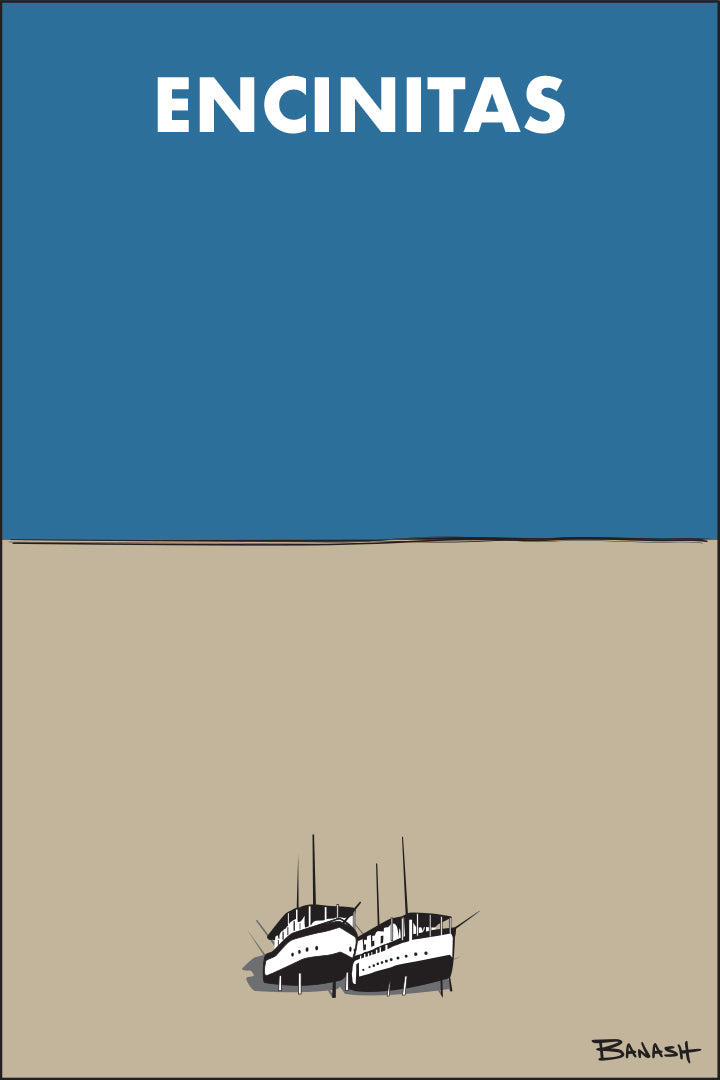 ENCINITAS ~ CALIF. ~ HISTORIC BOAT HOUSES ~ SAND ~ INDIGO SKY