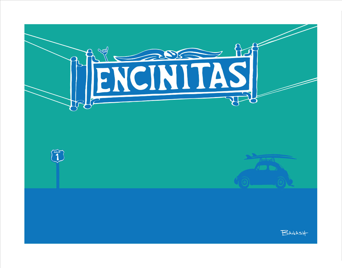 ENCINITAS ~ TOWN SIGN ~ SURF BUG ~ SEAFOAM ~ 3:4