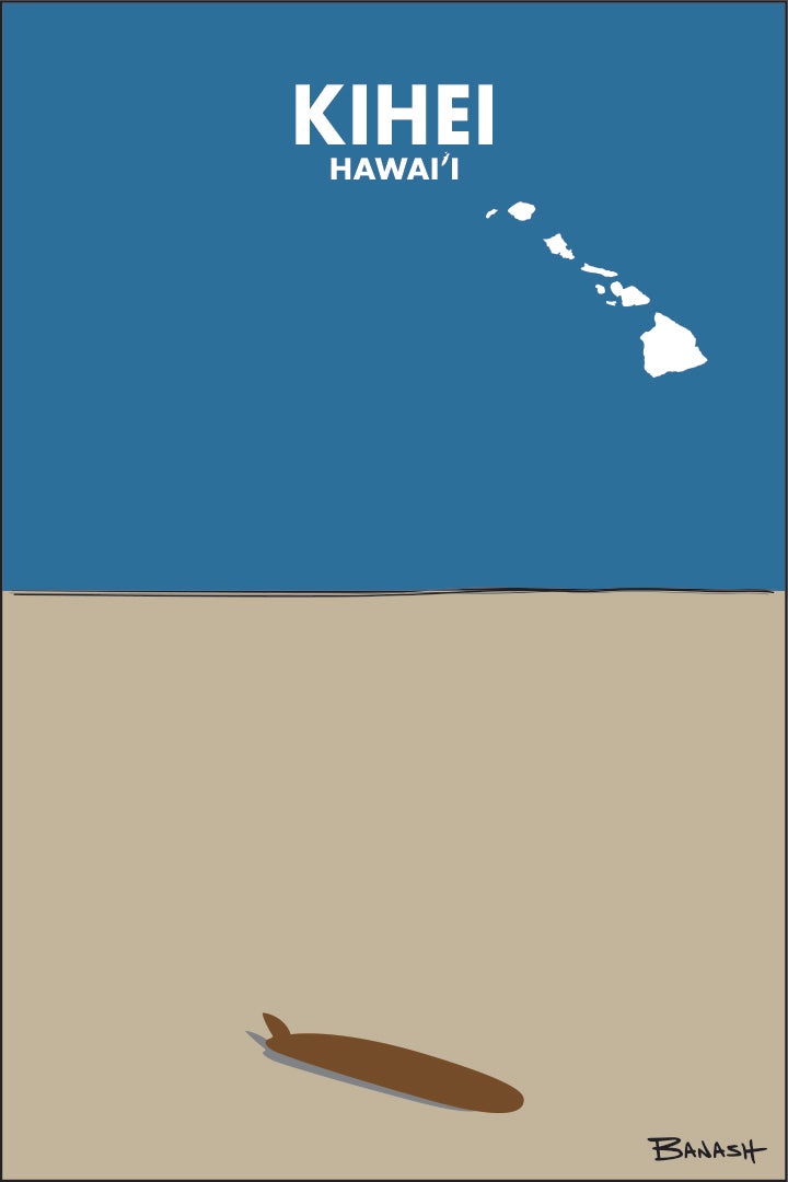 KIHEI ~ MAUI ~ HAWAI'I ~ LONGBOARD ~ SAND ~ INDIGO SKY
