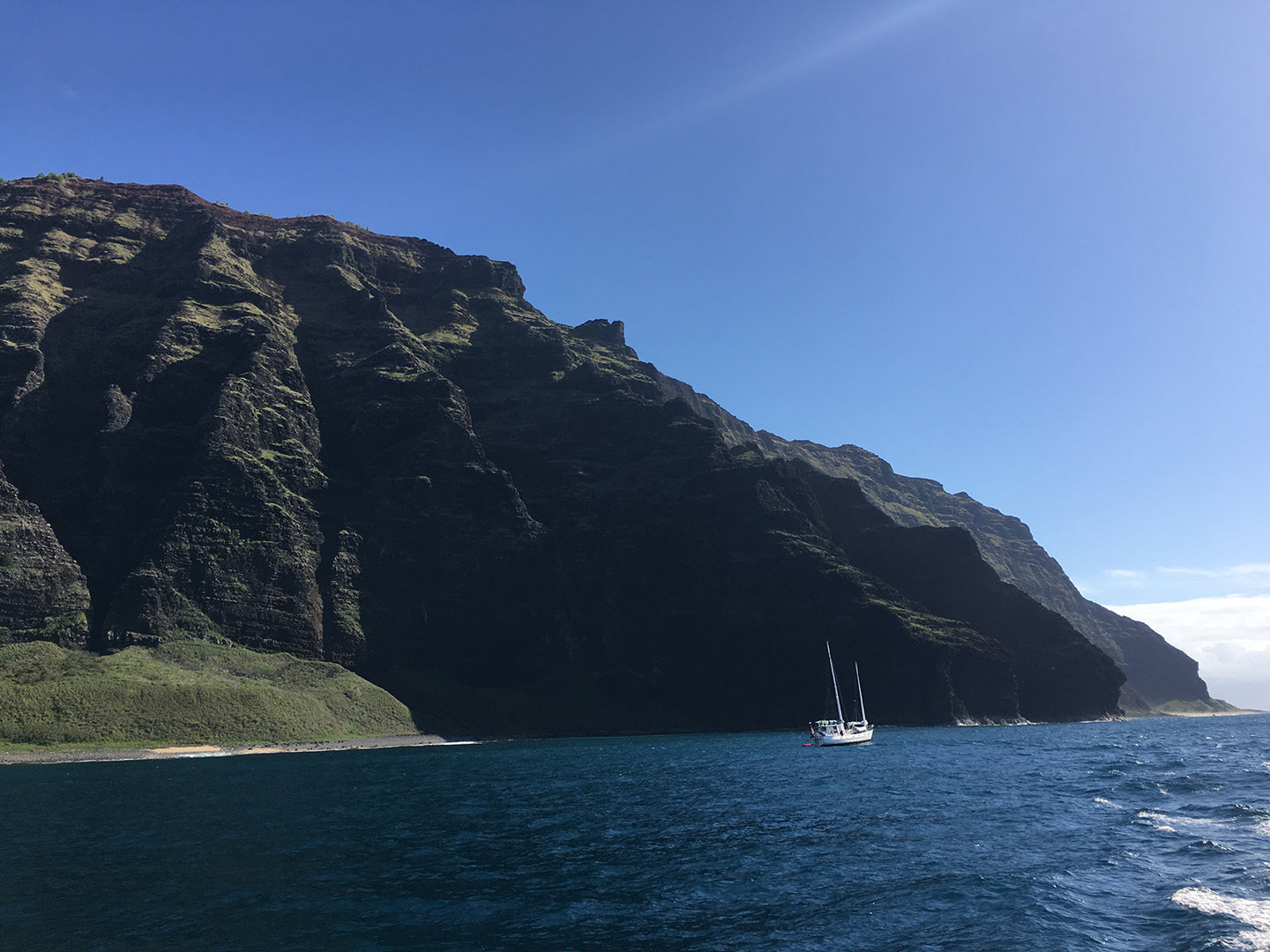 NA PALI COAST CLIFFS ~ SHORELINE SAILBOAT