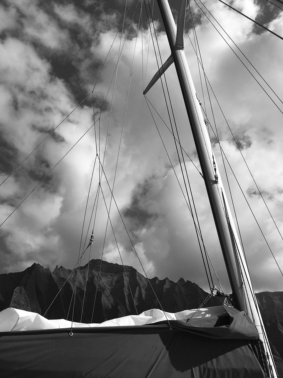 NA PALI COAST ~ HOLO HOLO CHARTER ~ MAST ~ GRAYSCALE ~ 3:4