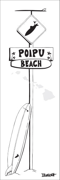 POIPU BEACH ~ SURF XING ~ LONGBOARD ~ SIGN POST