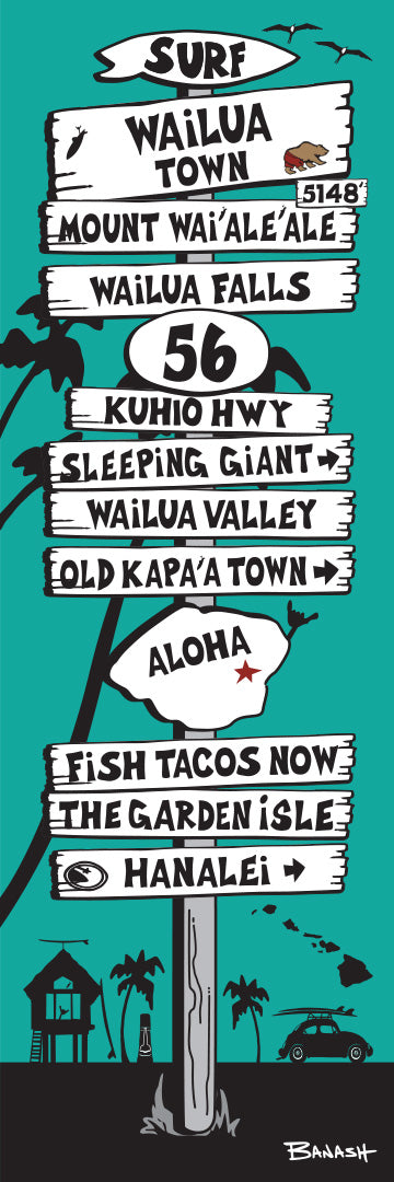 WAILUA TOWN ~ KAUA'I ~ KUHIO HWY 56 ~ SIGN POST ~ SEAFOAM